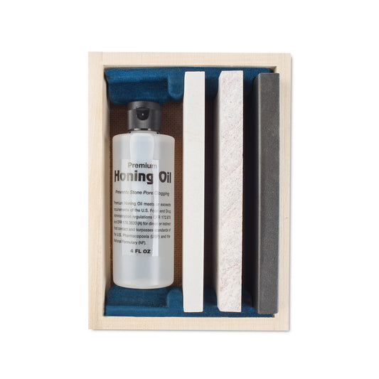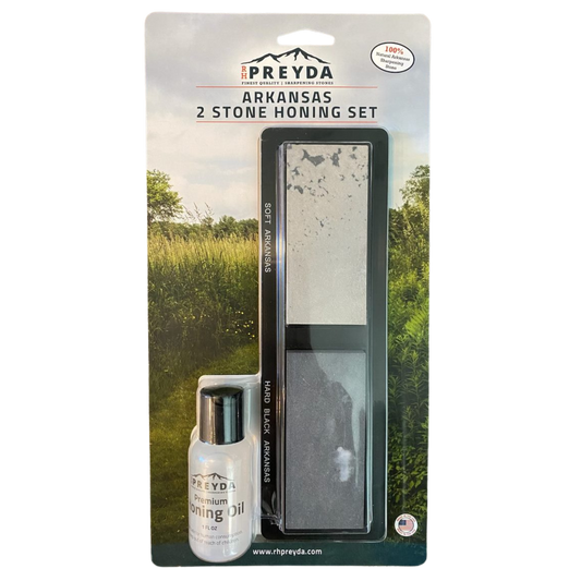 RH Preyda Deluxe Honing Kit - 2 & 3 Stone Kit - Soft Arkansas/Hard Black Arkansas - 5" x 1 5/8" x 1/2"