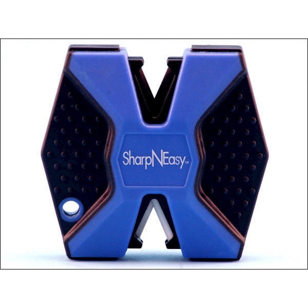 '- The SharpNEasy Two Step Ceramic Knife Sharpener. The ceramic rods, brown ceramic for coarse and white for fine, are exactly what someone needs to care for and maintain their blades. The two stages allow for the proper angle every time by having two stationary ceramic rods molded into the base. The Two Step Sharpener also has over molded grips. The over molding process allows the user to have a comfortable and secure grip while sharpening.