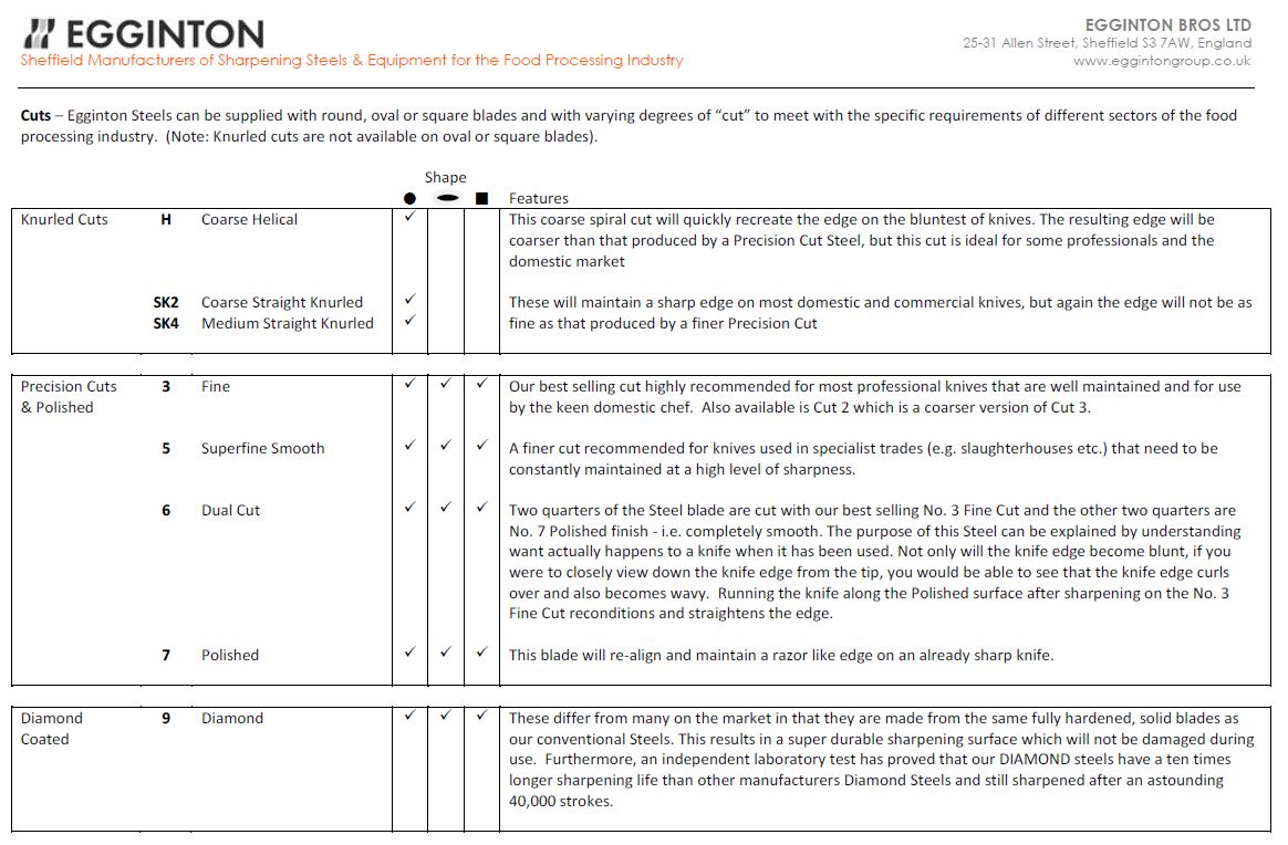 Other companies may apply their brand names to imported products, but we are proud to produce Sharpening Steels here in our own Sheffield factory.Manufactured by experts in knife sharpening, our Sharpening Steels and Diamond Steels are recognised by professionals the world over for their outstanding quality - they perfectly compliment and ensure optimum performance for all of the leading knife brands.