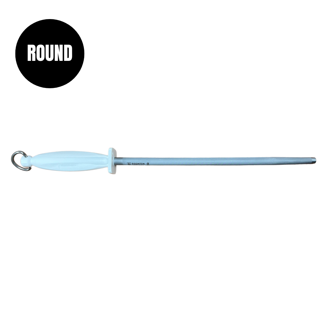 - Egginton's best selling Professional Sharpening Steel Round section blades in high carbon chrome vanadium steel hardened to 64° Rockwell C and hard chrome plated.