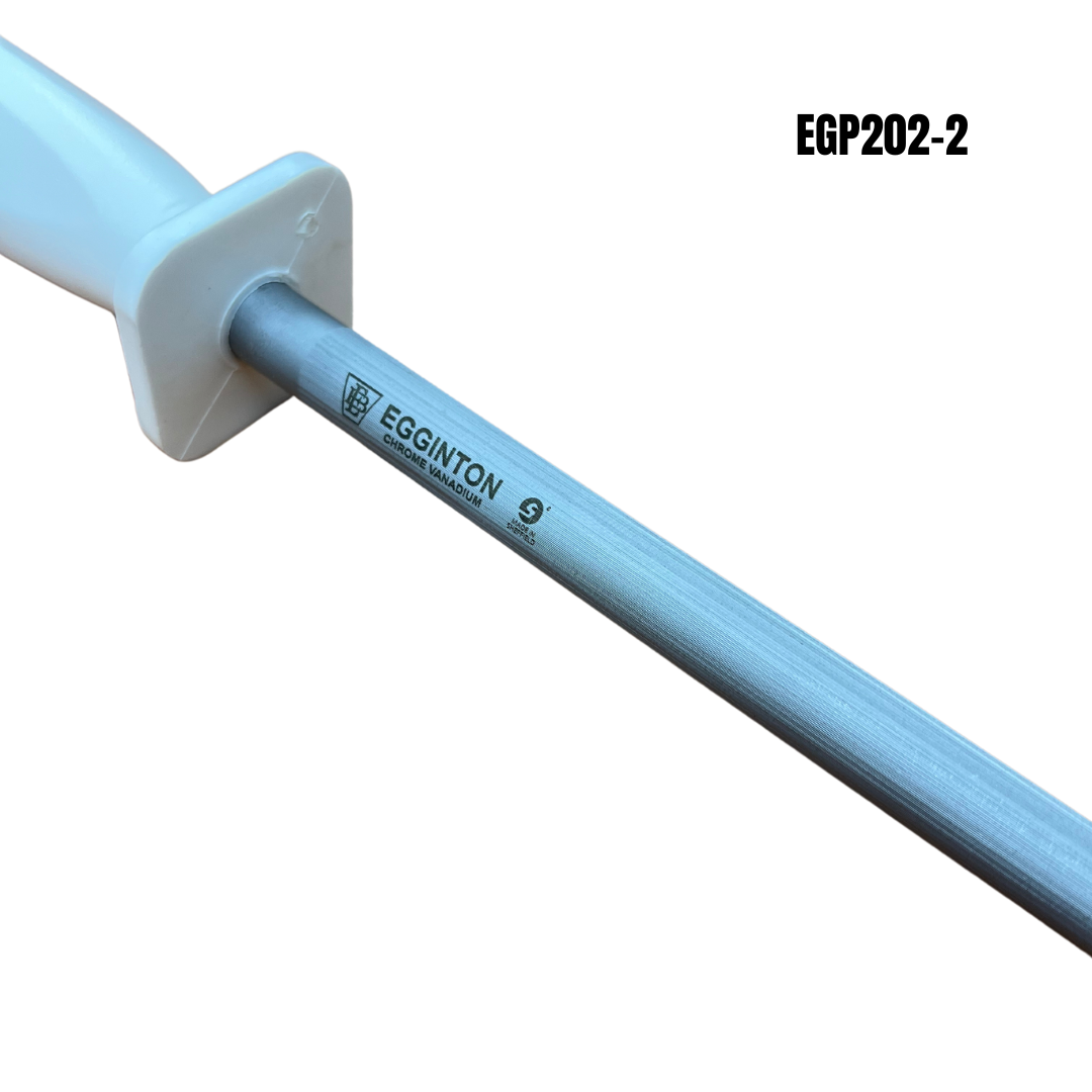 Egginton's best selling Professional Sharpening Steel Round section blades in high carbon chrome vanadium steel hardened to 64° Rockwell C and hard chrome plated.